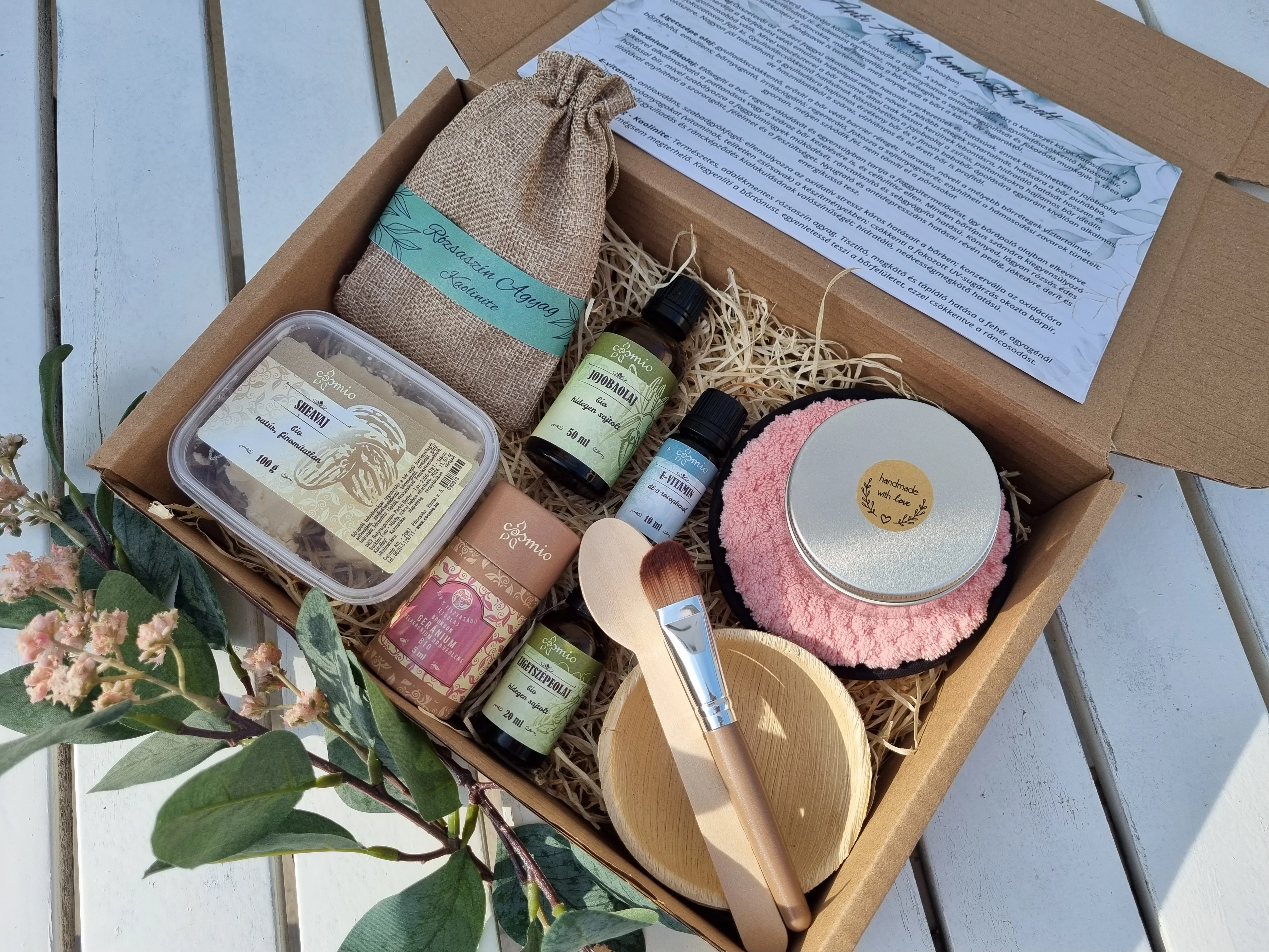 A kombinált csomagban olyan bio összetevőket találsz amelyek a természetben is megtalálhatóak. Készíthetsz egy hidratáló shea habot és több arcmaszkot is. A végeredmény pedig bársonyosan puha és feszes bőr. Természetes, adalékmentes agyagporból, tápláló hidegen sajtolt növényi olajból és 100%-os tisztaságú illóolajból álló gyönyörű kollekció, mellyel elkészítheted a saját agyagmaszkodat, ami tisztít, méregtelenít, puhává és ragyogóvá teszi a bőrt. Különleges ajándék szeretteidnek, kollégáidnak, de akár saját magadat is meglepheted vele. A doboz tartalma: |