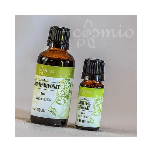 Bio zöldteakivonat. A teacserje (Camellia sinensis) leveleiből készült vizes-alkoholos-glicerines kivonat, ellenőrzött ökológiai gazdálkodásból. A kivonatot, hozzáadott tartósítószer nélkül, az alkohol- és glicerintartalom együttesen konzerválja. Ez a kivonatfajta különösen gazdag a zöldtea kiemelkedő antixodáns, összehúzó és tonizáló hatásaiért felelős hatóanyagaiban.