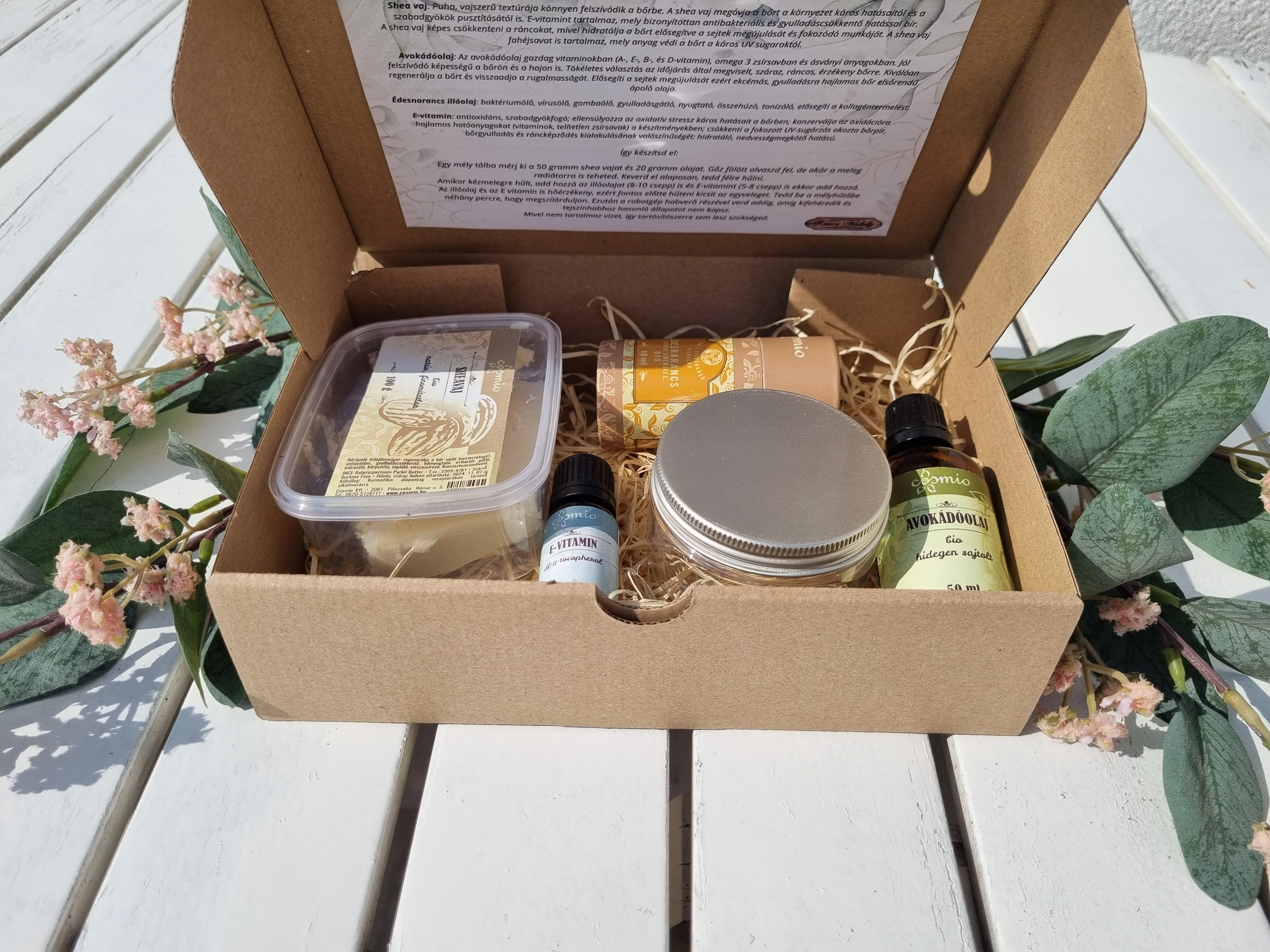 | Ezzel a csomaggal elkészítheted saját shea vaj habodat. A shea vaj kiegészítve némi avokádóolajjal és édesnarancs illóolajjal kiválóan táplálja és védi a bőrt az időjárás káros hatásaival szemben. A hozzávalókat és a receptet egy dekoratív ajándék dobozban találod. Szuper meglepetés lehet szeretteidnek bármilyen alkalomra. | |